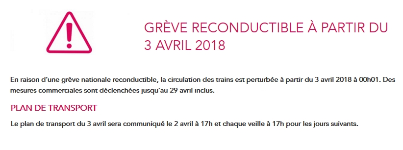 Flash info mouvement social : Tous les trains circulant un jour de grève sont affichés en « train complet » car fermés à la réservation.